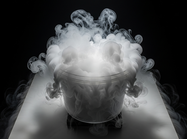 Dry ice which is frozen carbon dioxide releases CO2 when exposed to the atmosphere. As it melts it is converted from a solid to a gas. Dry ice has no liquid stage, which makes it easy to use and requires very little clean-up. Dry ice can be expensive for long-term use and it is difficult to store. Using insulated containers can slow the melting process, but it cannot be stopped.