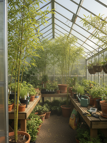 Bamboo plants can be grown from cuttings. Select healthy, vigorous, young canes and root them in water. Bamboo is also propagated from Rhizomes. Plant the rhizomes in large containers at a depth of 1 to 2 inches deep. The basic varieties are categorized as clumping or running which describes the plant growth habit. Clumping varieties are best for indoors houseplants and greenhouses.